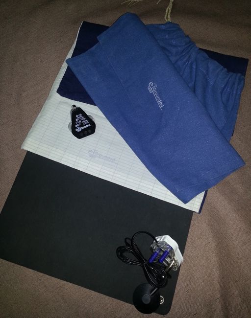 The Cocoon has the unbleached conductive cotton on the inside, and soft brush cotton on the outside of the envelope. Ideal for the active sports enthusiast -- assists with recovery after exertion like cycling, marathons, swimming, day-long cricket matches, and all other sports and activities that cause muscle and body aches and pains. Helps you sleep like a happy baby. No zipper; snap closures. Will also fit inside your regular sleeping bag. Kit contains the Cocoon with connector, cord and M-type plug for connection to SADEC country sockets, E-grounded socket tester -- in the denim-blue hemp travel tote with drawstring. Take it along everywhere you go! Opened up, you may use it as a bottom or top sheet on your bed. Connected to earth, of course.
